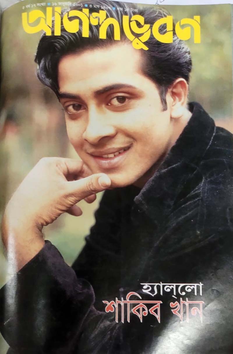 সুপারস্টার শাকিব খানকে নিয়ে আনন্দভুবনের ৫ বর্ষ ১৭ সংখ্যা [১৬ জানুয়ারি ২০০১]-সহ আরো কয়েকটি সংখ্যায় প্রচ্ছদ প্রতিবেদন প্রকাশ করা হয়। ১৬ জানুয়ারি ২০০১ সংখ্যার শিরোনাম ছিল ‘হ্যাল্লো শাকিব খান’। তার সম্পর্কে লেখা হয়েছে :